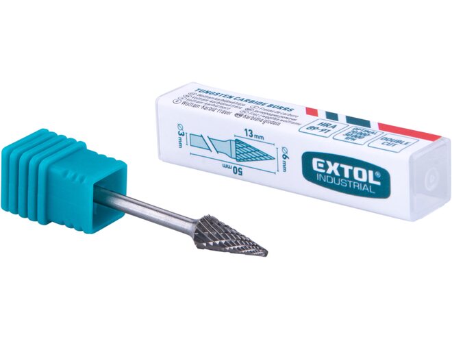 8703893-Fréza karbidová, kónická-jehlan, 6x13mm, stopka 3mm, sek střední